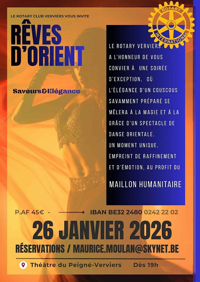 Le Théâtre du Peigné accueille Rêves d’Orient, une soirée caritative organisée par le Rotary Club Verviers, placée sous le signe du partage, de l’élégance et de la découverte.